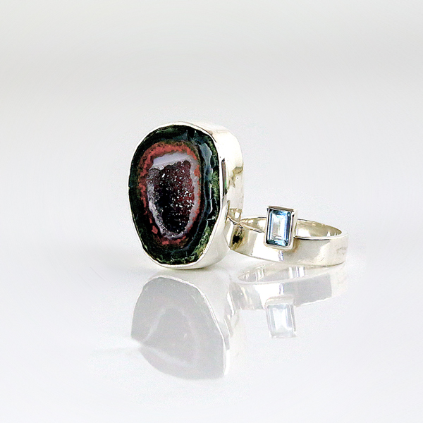 Anel Geodo com Topázio Azul